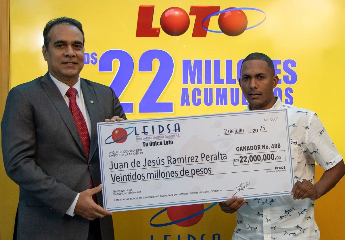 SANTIAGO.– La suerte le cambió la vida a Juan de Jesús Ramírez Peralta, un joven empacador de supermercado que ganó 22 millones de pesos en el sorteo Loto de la Lotería Electrónica Internacional Dominicana (LEIDSA).