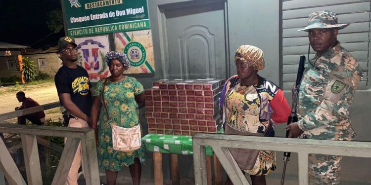 Santo Domingo,.- Dos mujeres de nacionalidad haitiana fueron detenidas por soldados del Ejército de República Dominicana (ERD) cuando se desplazaban con 16,000 cigarrillos en la comunidad Don Miguel, en la provincia Dajabón, se informó este domingo.