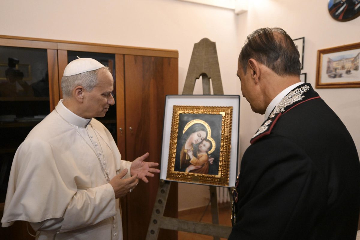 León XIV recordó además «la devoción a la Virgen fiel reflejo del lema de los Carabineros, ‘Fieles a lo largo de los siglos’, expresando el sentido del deber y la abnegación de cada miembro del Arma, incluso hasta el sacrificio de sí mismos».