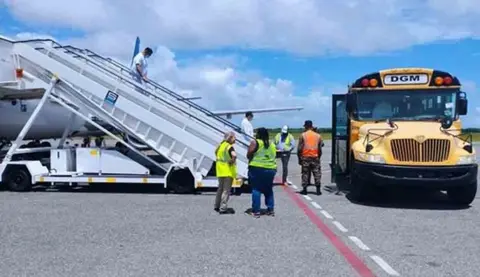 El grupo llegó al Aeropuerto Internacional de Las Américas (AILA) en un avión fletado y fue recibido por agentes federales, quienes los entregaron a personal de la Dirección General de Migración (DGM) y del Cuerpo Especializado en Seguridad Aeroportuaria (CESAC).