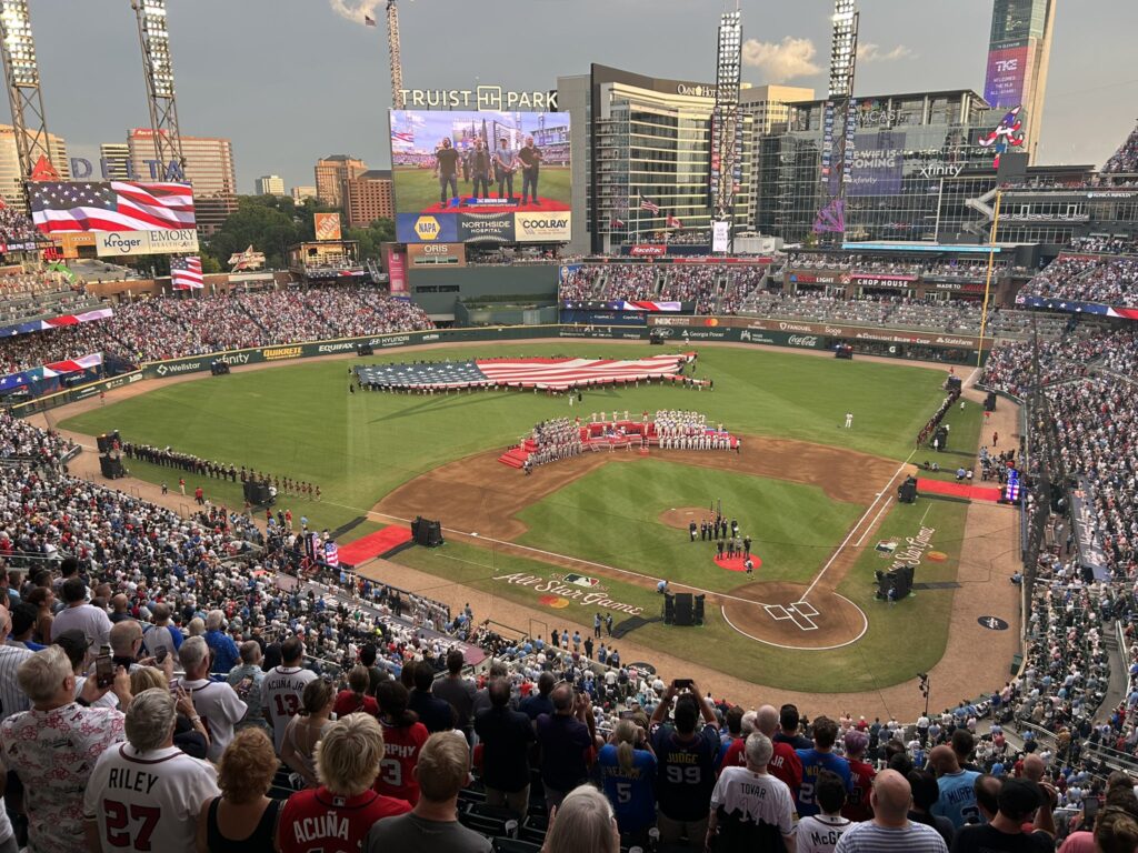 La jornada comenzó con un emotivo tributo a Hank Aaron, con una proyección virtual de su icónico jonrón 715, pirotecnia y la narración original de Vin Scully. El Truist Park se transformó simbólicamente en el Atlanta-Fulton County Stadium para rendirle homenaje a uno de los íconos más grandes del béisbol.