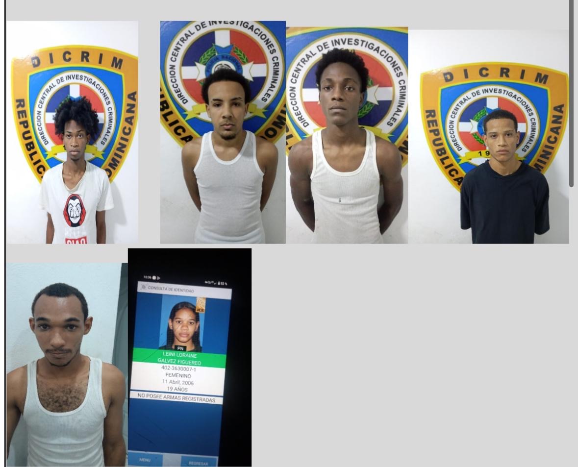 En el operativo fueron detenidos Yonathan Youse Florián ‘El Yai’, Yojancer Presional ‘Conpota’, Mervin Báez Díaz ‘Yeral’, Grabier Monte Quezada ‘Pollito’, Even Miguel Almonte Castillo, Elías Alberto Sala, Germán Adrián, Yeison de la Cruz y Lenny Loraine Garbe Figuereo.