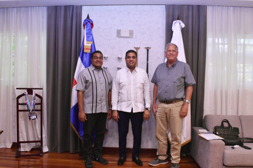 Santo Domingo.– El ministro de Deportes, Kelvin Cruz, sostuvo una reunión con José P. Monegro, presidente del Comité Organizador de los Juegos Centroamericanos y del Caribe (JCC), y Juan Antonio García Smester, presidente de la Fundación Juan Ulises García Saleta (Wiche), para coordinar acciones conjuntas que garanticen la implementación de políticas integrales orientadas a la sostenibilidad del Centro Olímpico Juan Pablo Duarte.