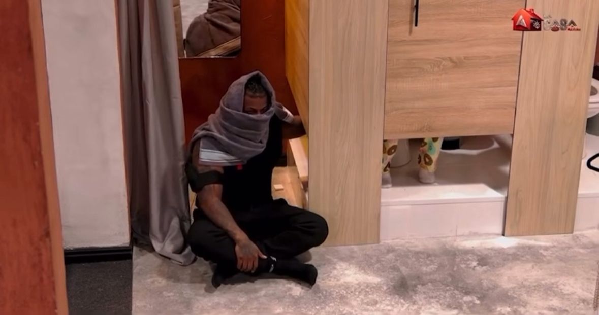 En una escena tan divertida como incómoda, el artista se envolvió la cabeza en una toalla, se sentó en el suelo y acompañó a su compañera… ¡al baño!, mientras esta hacía el número dos, reto inicialmente divertido que se transformó rápidamente en una verdadera prueba de confianza, paciencia y resistencia… ¡sobre todo olfativa!