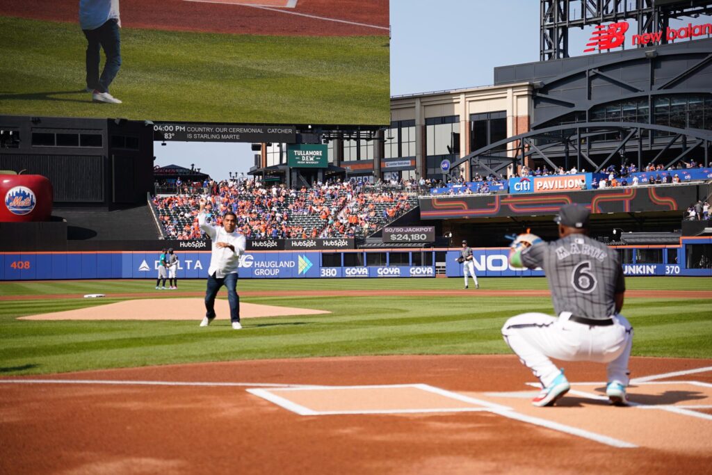 El veterano jardinero dominicano de los Mets, Starling Marte, fungió como receptor de honor.