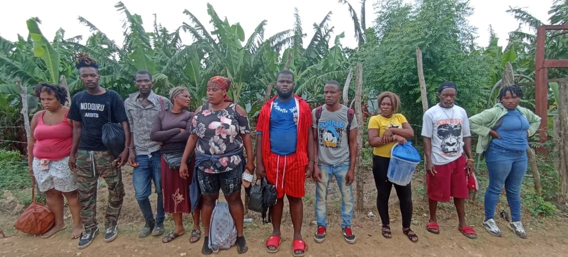 Soldados del ERD apostados para servicio en la Inspectoría de Loma de Cabrera, Dajabón, interceptaron a un grupo de veintiséis (26) nacionales haitianos indocumentados compuesto por diecinueve (19) hombres, siete (07) mujeres y dos (02) menores de edad, quienes intentaban evadir los dispositivos de seguridad de la zona.