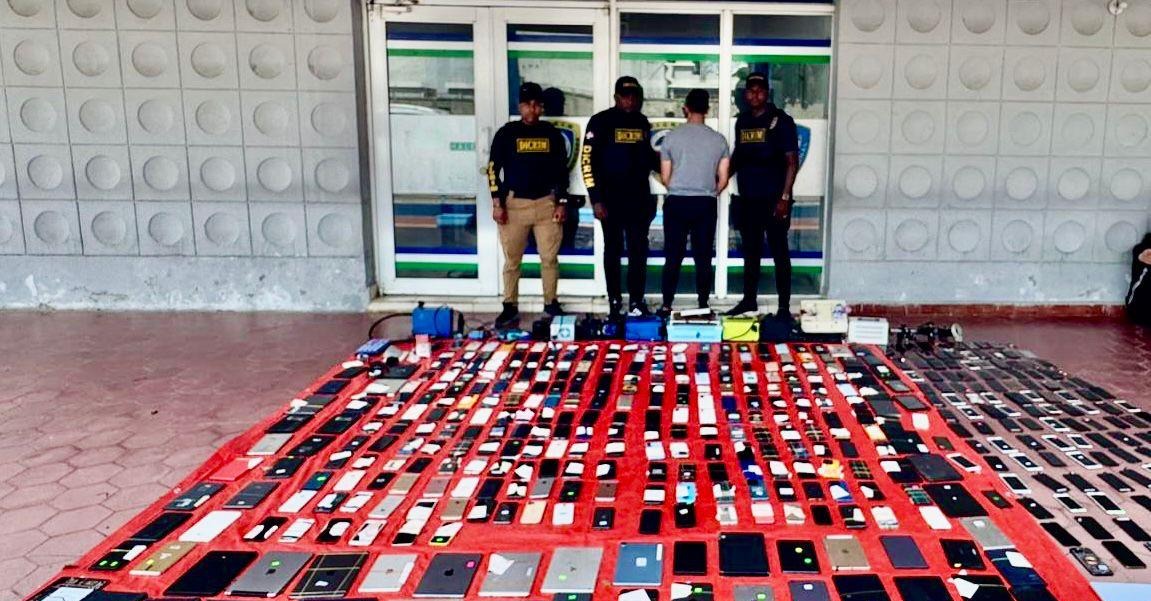 Santiago. – La Policía Nacional y el Ministerio Público, incautan 241 celulares, 136 pantallas, 65 tabletas, cuatro laptops y otros equipos electrónicos durante un allanamiento realizado en una tienda de celulares en el sector Hato Mayor de Santiago, donde además fue arrestado un hombre.
