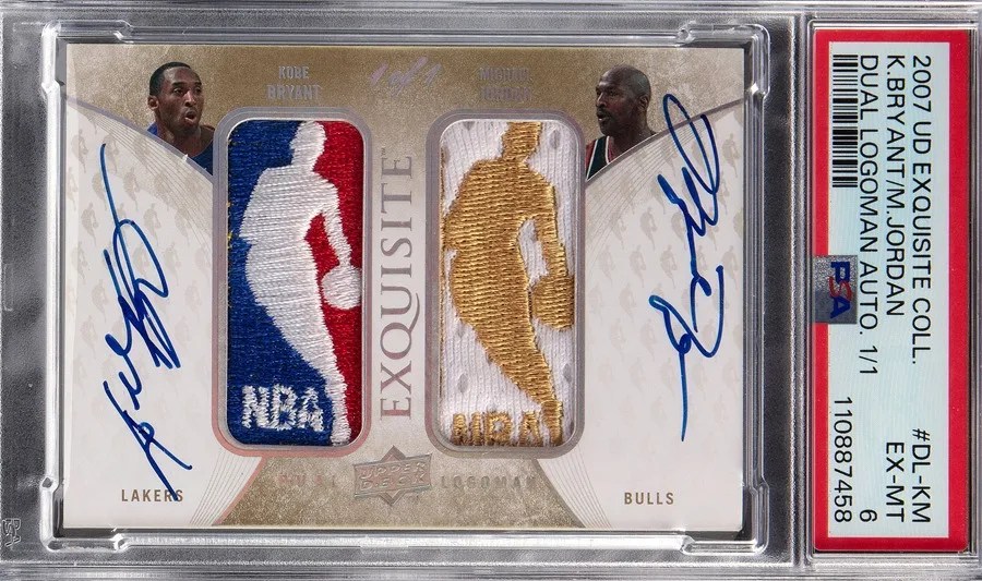 La tarjeta, cuyo comprador no fue identificado por la casa de subastas, pertenece a la colección Upper Deck Exquisite 2007-08 y tiene incorporado el parche del logotipo de la NBA de las camisetas de Bryant y Jordan.