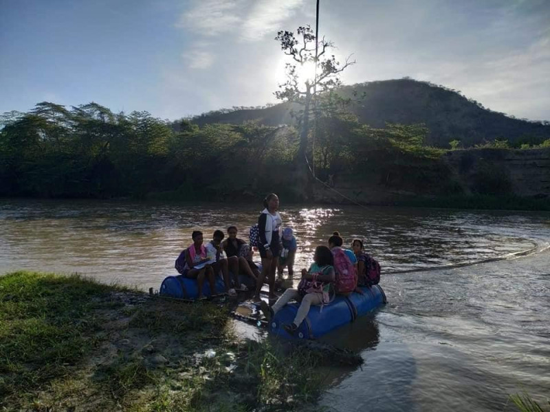 El plantel, con más de 20 años en espera de reconstrucción, solo imparte docencia hasta 4to de primaria, lo que obliga a los niños y niñas a trasladarse a otras comunidades cercanas, como El Higuito o Fondo Negro, para culminar la educación básica. El trayecto incluye largas caminatas desde las 6:00 de la mañana, el cruce en balsas hechas con cuatro tanques —por el que pagan 50 pesos— o incluso nadando, y finalmente depender de “bolas” hasta llegar a los centros educativos.