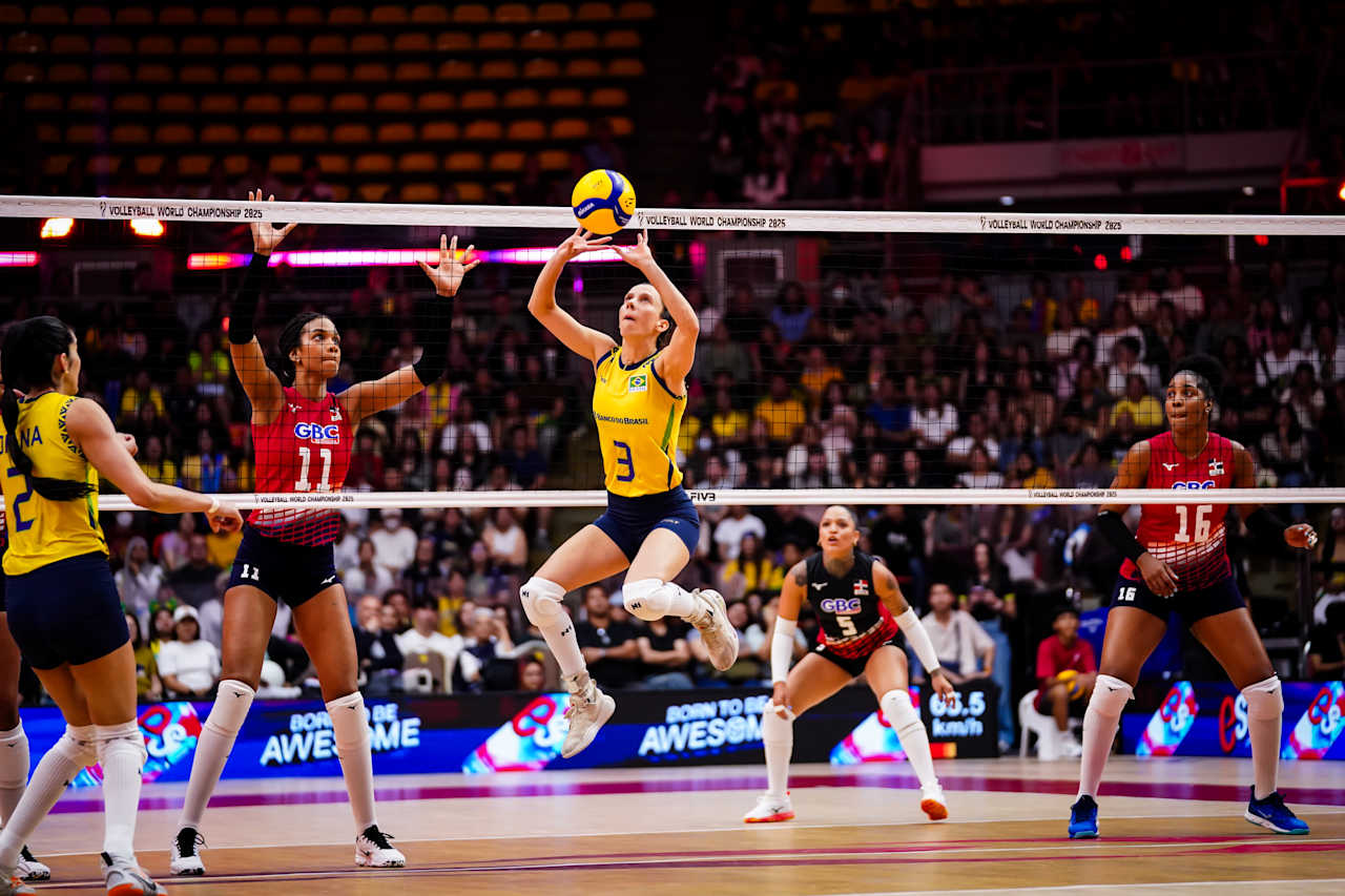 Luego, las ganadoras hicieron otro rally 5-0 ante Dominicana para poner el juego 18-4. El bloqueo de Brasil fue letal para las caribeñas y Gabi cerró el choque con fuertes remates.