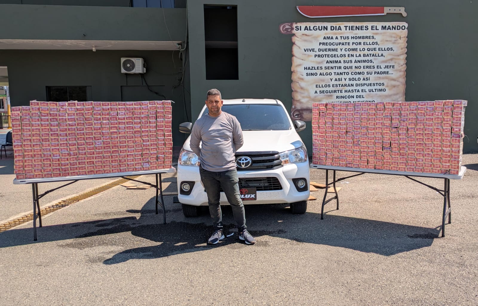 En el primer caso, fue detenido Alquímides Bueno Rodríguez, quien conducía una camioneta Toyota Hilux blanca, placa L479055, en la que transportaba 499 paquetes de cigarrillos marca Capital, equivalentes a 99,800 unidades.