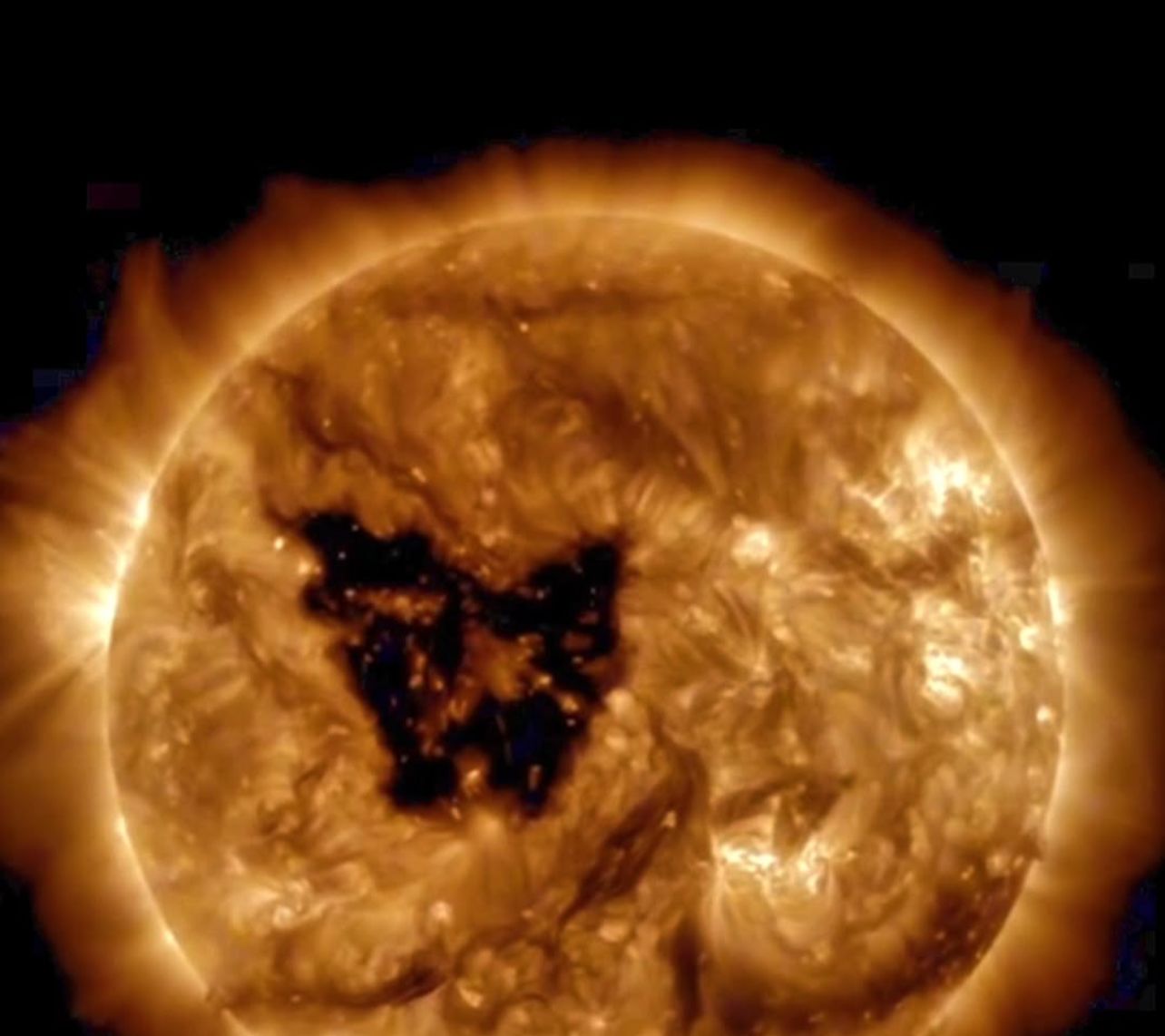 Santo Domingo. – En las últimas 24 horas un agujero gigante se ha abierto en el sol, generando una “Pareidolia” con forma de mariposa: en el parche oscuro, el viento solar ha escapado al espacio, así ha revelado el experto del tiempo, Jean Suriel, quien destacó que esto no representa ningún peligro para la humanidad ya que el campo magnético de la tierra protege de las tormentas solares.