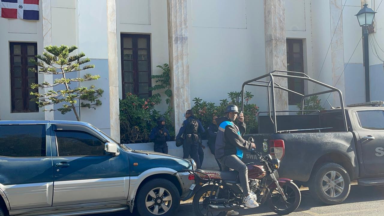 Agentes de la unidad Swat se apostaron desde tempranas horas de la tarde frente a la institución gubernamental, con el objetivo de garantizar la seguridad y prevenir cualquier eventualidad en la principal arteria comercial de la ciudad corazón