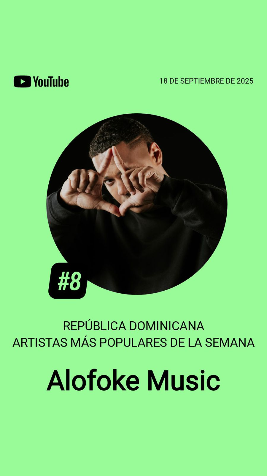 Santo Domingo.– La plataforma YouTube reveló su lista semanal de los artistas más populares en República Dominicana, destacando a Alofoke Music en la posición número 8.