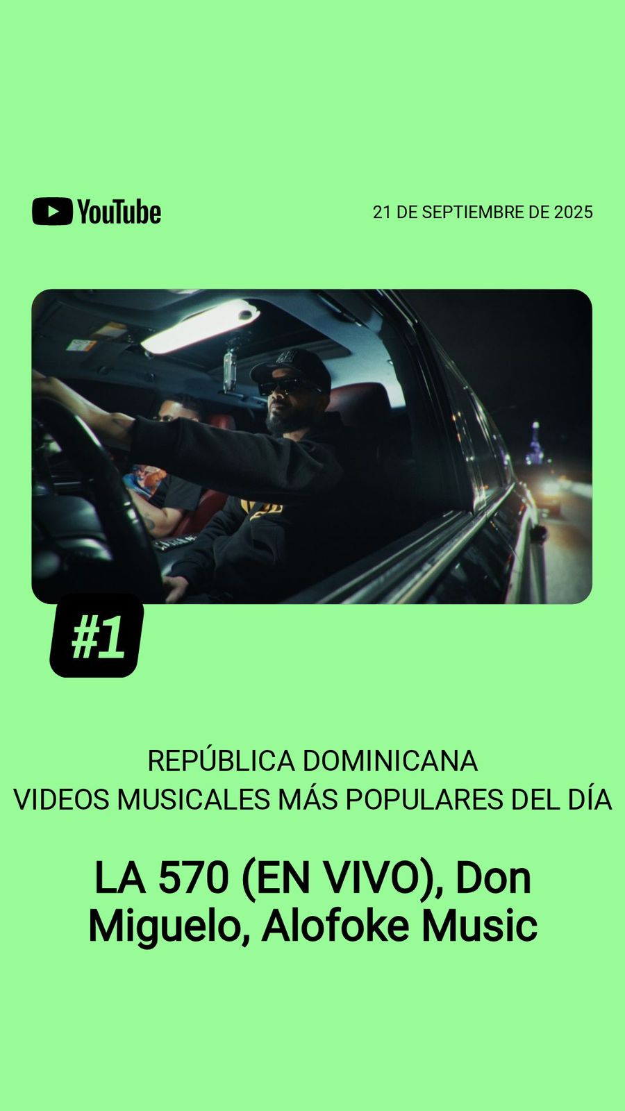 SANTO DOMINGO, RD.- Tras varias semanas liderando las listas de éxitos, el artista Dalvin y su tema “La Melodía” fueron desplazados este día del primer lugar de los tops musicales por la canción “570 en vivo”, interpretada por Don Miguelo en colaboración con Alofoke Música.
