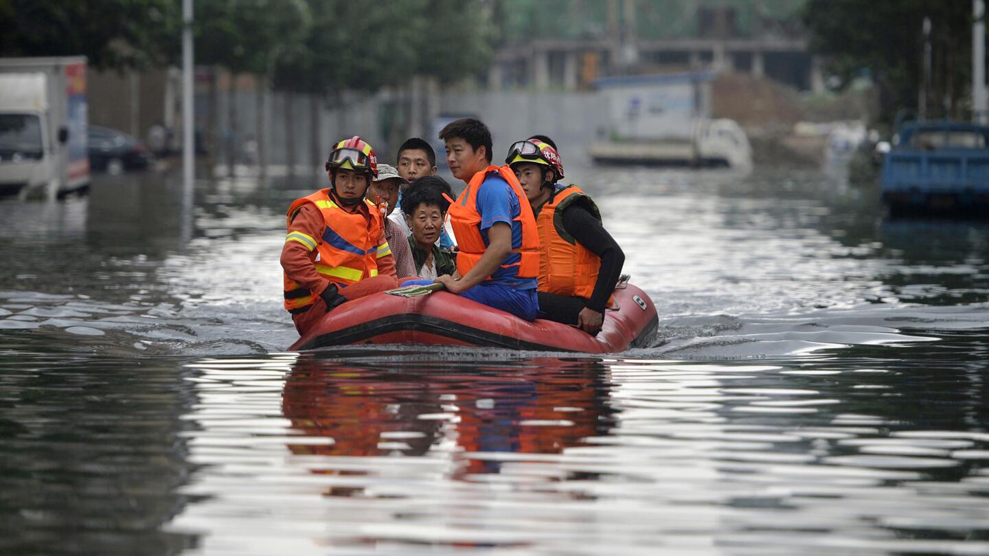La riada inundó rápidamente el centro urbano de Guangfu, donde varias calles quedaron sumergidas hasta el nivel de los tejados en algunas zonas.