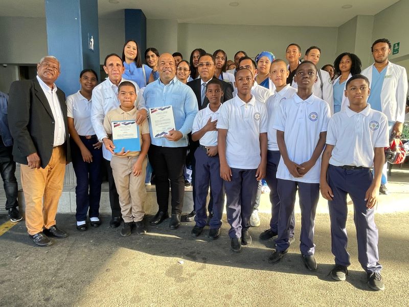 El acto contó con la presencia del Dr. Cruz Camacho, médicos de la Clínica Cruz Jiminián y otras personalidades del ámbito educativo, social y de la salud, así como dirigentes comunitarios y estudiantes del Colegio Rosa de Sarón.