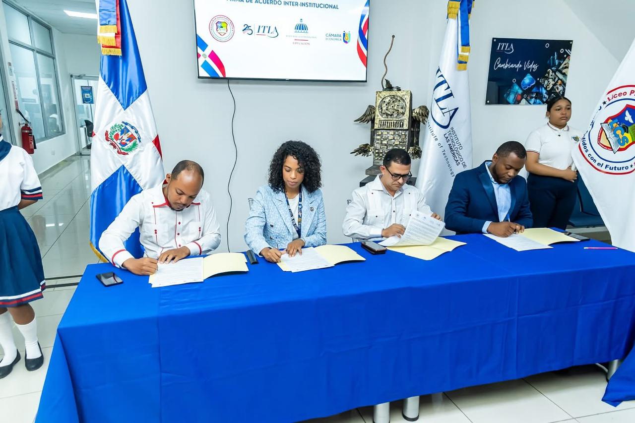 Bonao. – El Instituto Tecnológico de las Américas (ITLA), extensión Bonao, firmó un acuerdo interinstitucional con el Liceo Luisa Cuello Santos y la Cámara Económica Joven, bajo la observación del Ministerio de Educación, para integrar a 170 estudiantes de educación media en programas formativos durante el período octubre-diciembre de 2025.