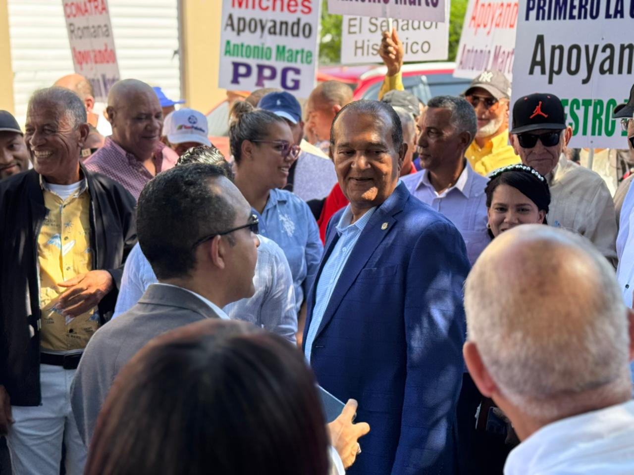 Santiago Rodríguez, R.D. – El Senador Antonio Marte junto a un equipo de abogados del Partido Primero la Gente (PPG), depositó una querella formal contra el empresario artístico Eladio Castro, a quien acusa de emitir juicios injuriosos y difamatorios en su contra sin estar sustentados en pruebas, considerar que esta acción, atenta contra su honor y reputación.