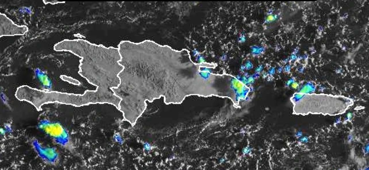 Para esta tarde, se esperan lluvias entre moderadas y fuertes hacia el sureste, noreste, norte, sur, Cordillera Central y noroeste por los efectos de una vaguada y los vientos húmedos: descargas eléctricas podrían registrarse al final de la tarde.