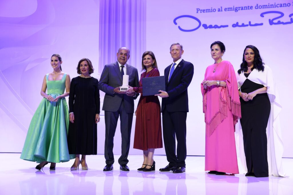 Santo Domingo.– El Ministerio de Relaciones Exteriores (MIREX) entregó la séptima edición del Premio al Emigrante Dominicano Sr. Oscar de la Renta al líder comunitario, Augusto Taveras, quien instauró la Fundación Rancheros Unidos en Nueva York, entidad que ha transformado la vida de cientos de familias campesinas en su tierra natal, Los Ranchos de Babosico en Santiago de los Caballeros, mediante la donación de más de 500 viviendas completamente equipadas.