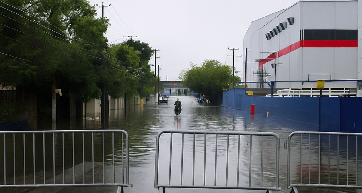 Autoridades bloquean la calle Defilló por fuertes inundaciones tras lluvias de la tormenta Melissa