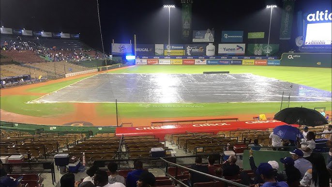 El terreno del Estadio Quisqueya Juan Marichal permaneció cubierto con lonas gran parte del día, en un intento por proteger el campo de juego, pero las condiciones del tiempo impidieron cualquier posibilidad de acción.