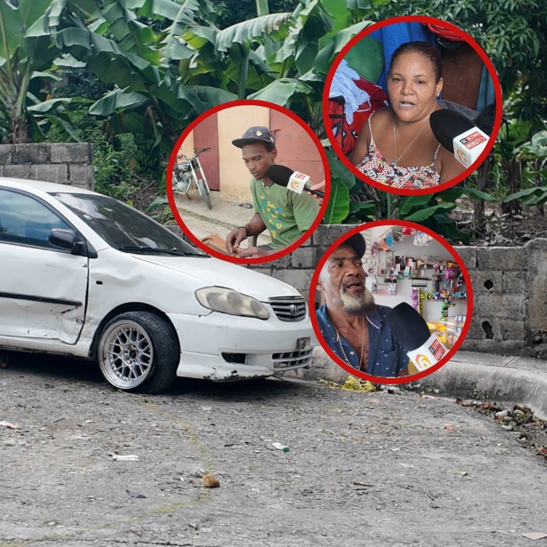 “Yo vi que esa jeepeta pasó como el diablo, chocó el carro de la doña aquí y de una vez comenzó el tiroteo. Cerramos el negocio rápido, pero mira cómo llegó una bala hasta la puerta”, relató Juan Pérez, residente del sector.
