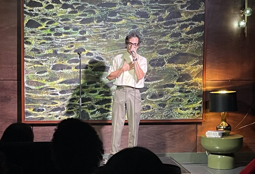 La velada continuó con un breve recital en el que la cantante Anne Yvonne puso voz al poema “Amanecer” y Auro Sónico interpretó varios de los textos del libro, mezclando spoken word, lectura performática y música. El cierre estuvo a cargo del propio autor, quien recitó cantó dos canciones incluidas en “Vuelve y juega”, dejando al público con una sensación de cercanía y celebración artística.