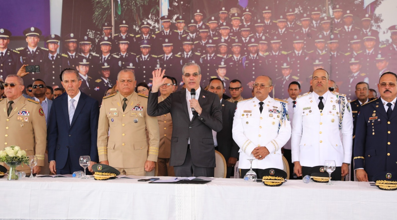 El presidente Abinader tomó el Juramento a los nuevos oficiales y encabezó el ceremonial de entrega de entrega de sables, símbolo del compromiso institucional asumido por los cadetes como oficiales policiales.