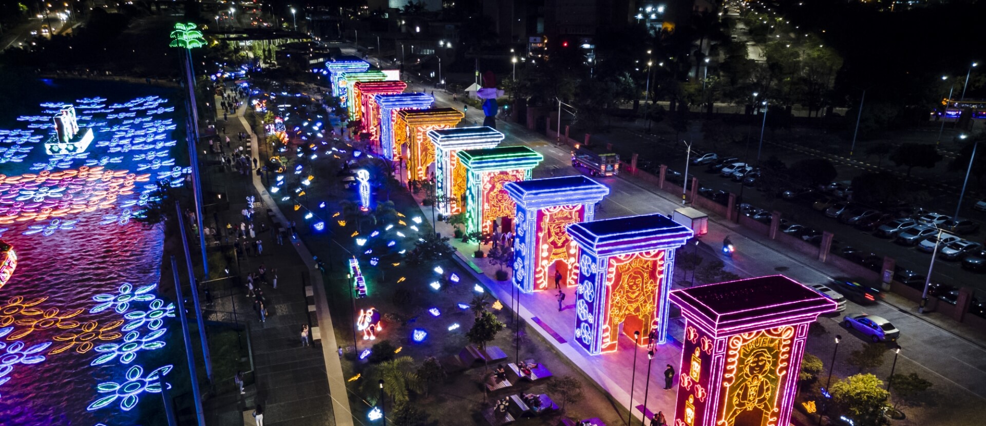 La iluminación incluye un árbol navideño de 25 metros de alto, adornado con orquídeas moradas que ofrece una experiencia inmersiva en la ciudad, que ya se iluminó con velas y faroles en la tradicional Noche de las Velitas, una vigilia previa a la Inmaculada Concepción que marca el inicio de las fiestas navideñas en el país.