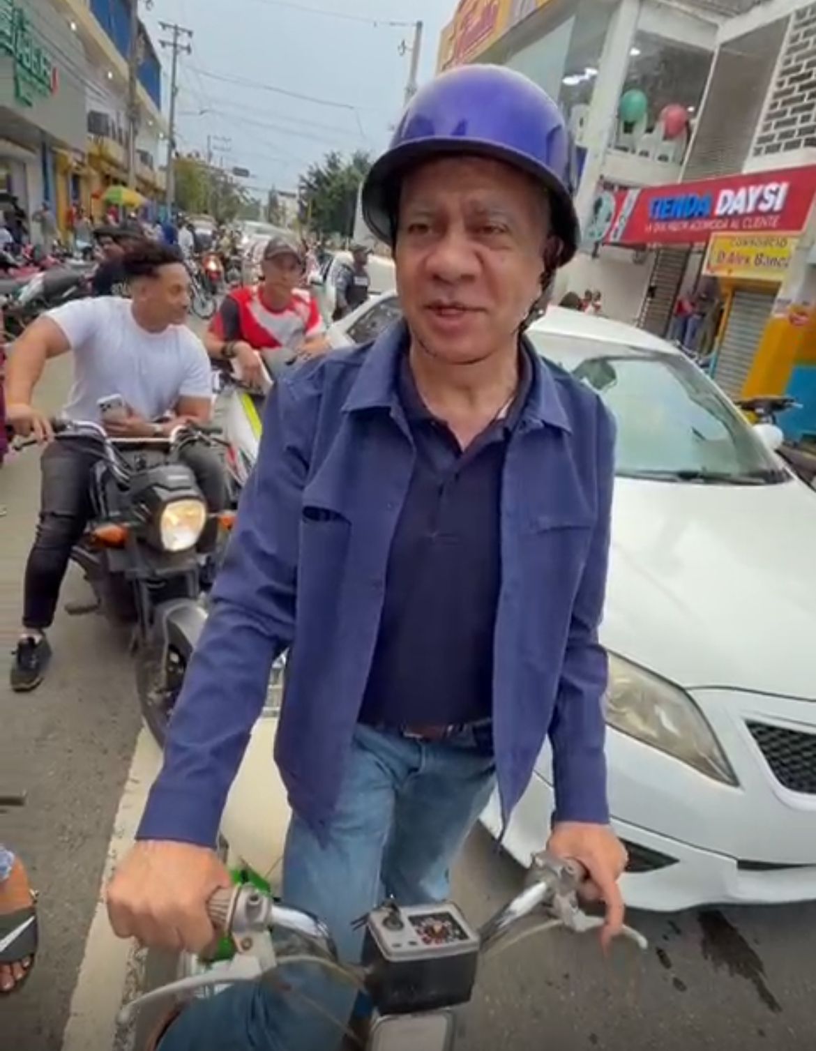 Cotuí, Sánchez Ramírez.– Como parte de una tradición que mantiene desde hace años, el senador por la provincia Sánchez Ramírez y presidente del Senado de la República, Ricardo de los Santos, fue visto este martes 24 de diciembre recorriendo las calles de su natal Cotuí a bordo de su emblemático motor Carrot del año 70.
