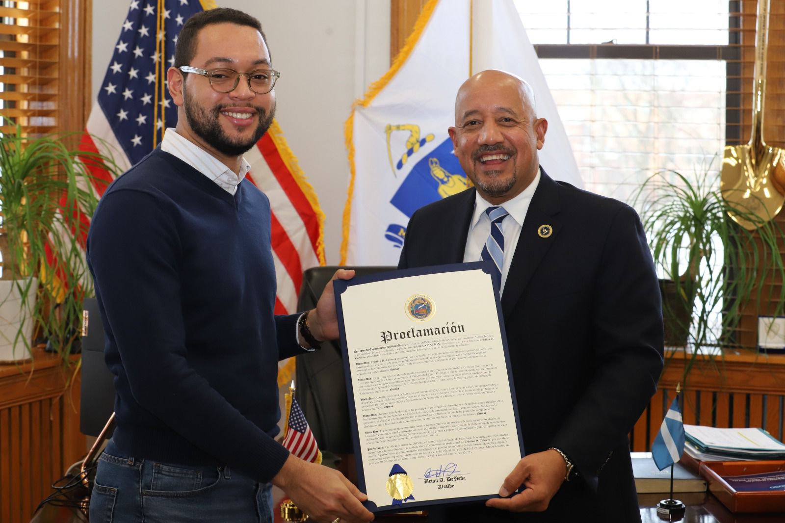 El alcalde de Lawrence, Brian De Peña, resaltó la capacidad de Cabrera para comprender el periodismo como un espacio de servicio público y una herramienta para fortalecer la democracia y hermandad de los pueblos.