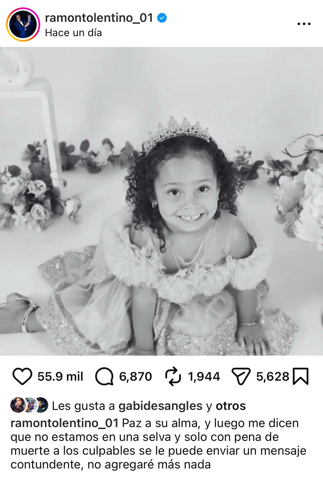 En una reacción más contundente, el comunicador Ramón Tolentino, expresó su indignación a través de redes sociales, cuestionando el estado de seguridad y justicia en el país. “Luego me dicen que no estamos en una selva… solo con pena de muerte se envía un mensaje contundente”, escribió iniciando nuevamente el debate sobre las sanciones que deben enfrentar los responsables de crímenes de extrema gravedad.