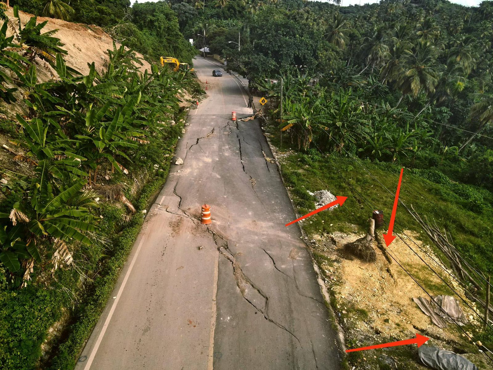 Tramo carretero colapsado en Punta Balandra, Samaná, permanece abandonado y sin señalización