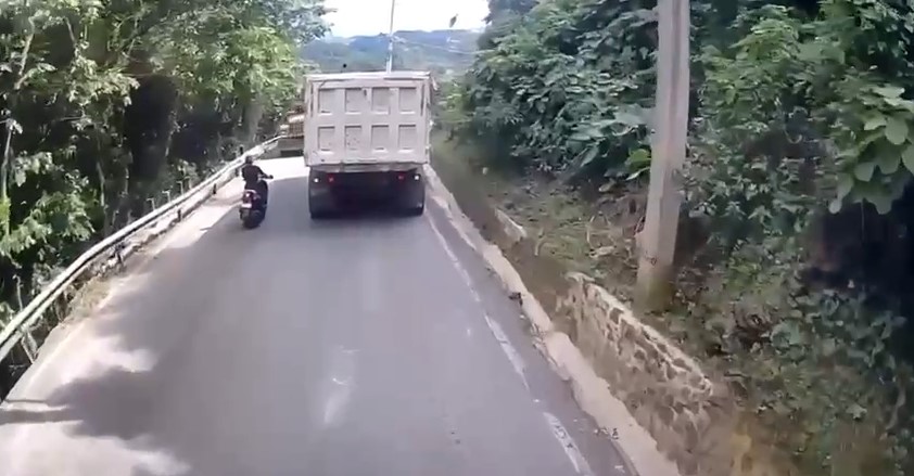 Samaná.- Un video que circula en redes sociales muestra dos camiones pesados cruzándose de frente en la carretera Las Terrenas–Sánchez, una maniobra que puso en inminente peligro la vida de conductores y motociclistas que transitaban por la zona.