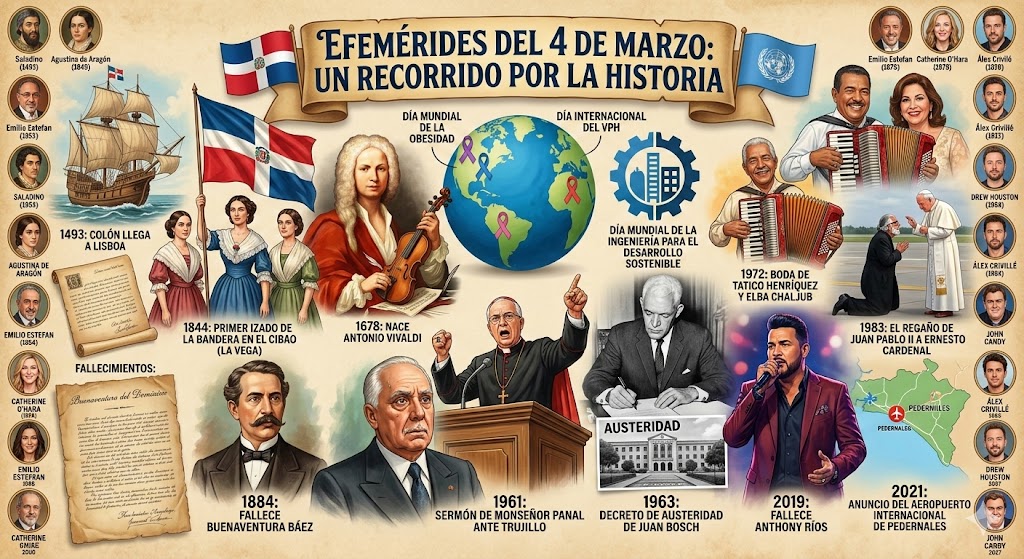 Santo Domingo.- Las efemérides del 4 de marzo, están marcadas por importantes acontecimientos históricos y celebraciones internacionales que dejaron huella en la historia mundial. A continuación, las principales efemérides del 4 de marzo: