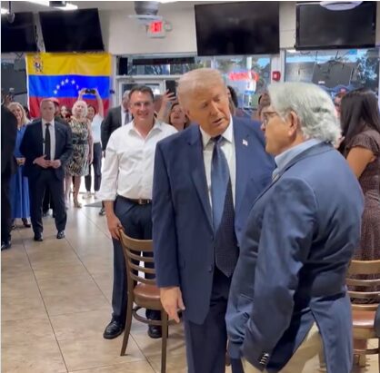 Durante su estancia en el local, Trump saludó a clientes y empleados, estrechó manos y posó para fotografías con simpatizantes. En medio del ambiente festivo, preguntó a los asistentes quiénes eran de Venezuela y conversó brevemente con miembros de las comunidades venezolana, cubana y nicaragüense presentes en el establecimiento.
