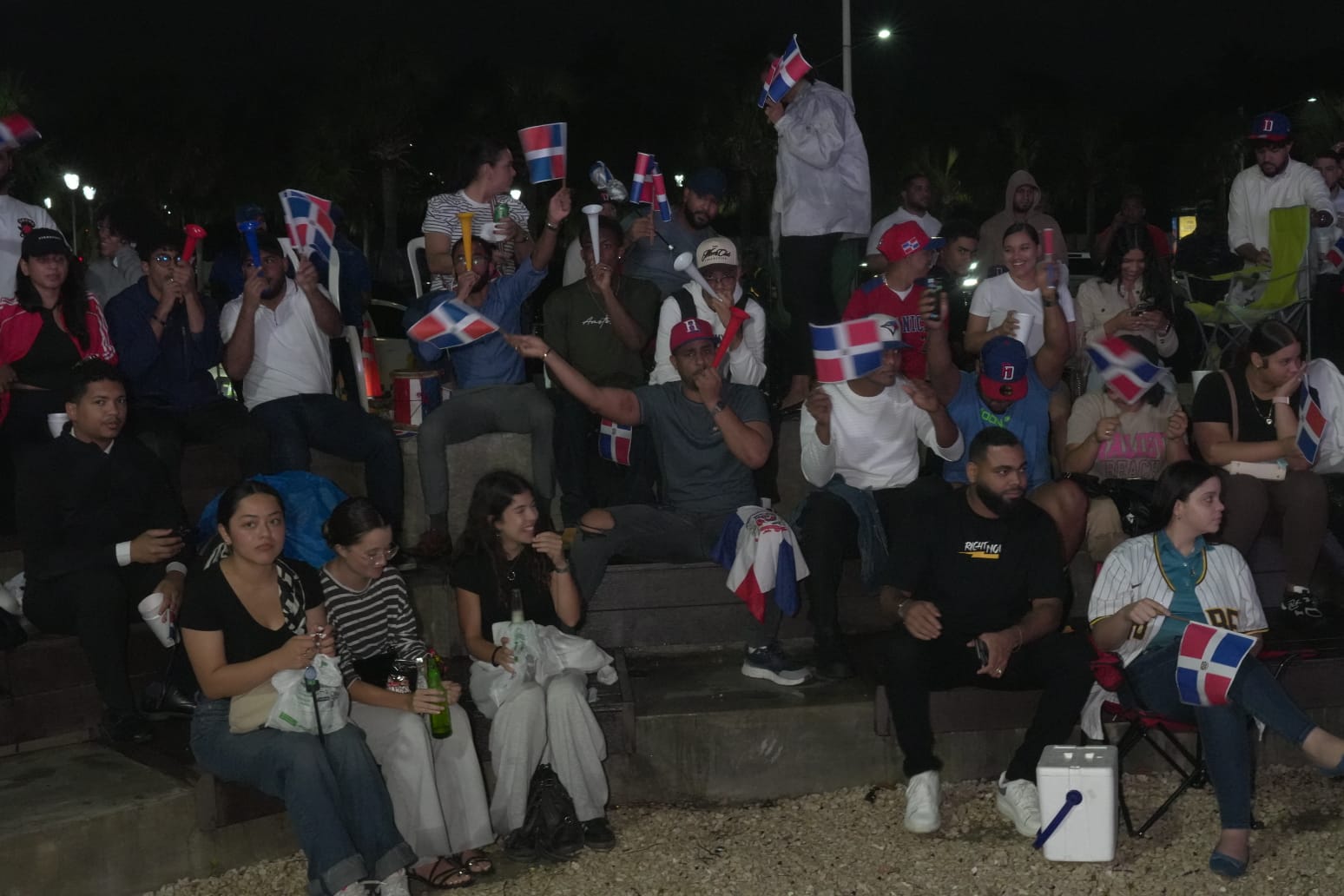 Cientos de fanáticos que se encontraban reunidos en el Malecón de Santo Domingo, específicamente en el área del Parque Santo Domingo, reaccionaron con gritos, aplausos y banderas tras el batazo que encendió el ambiente frente al mar Caribe.