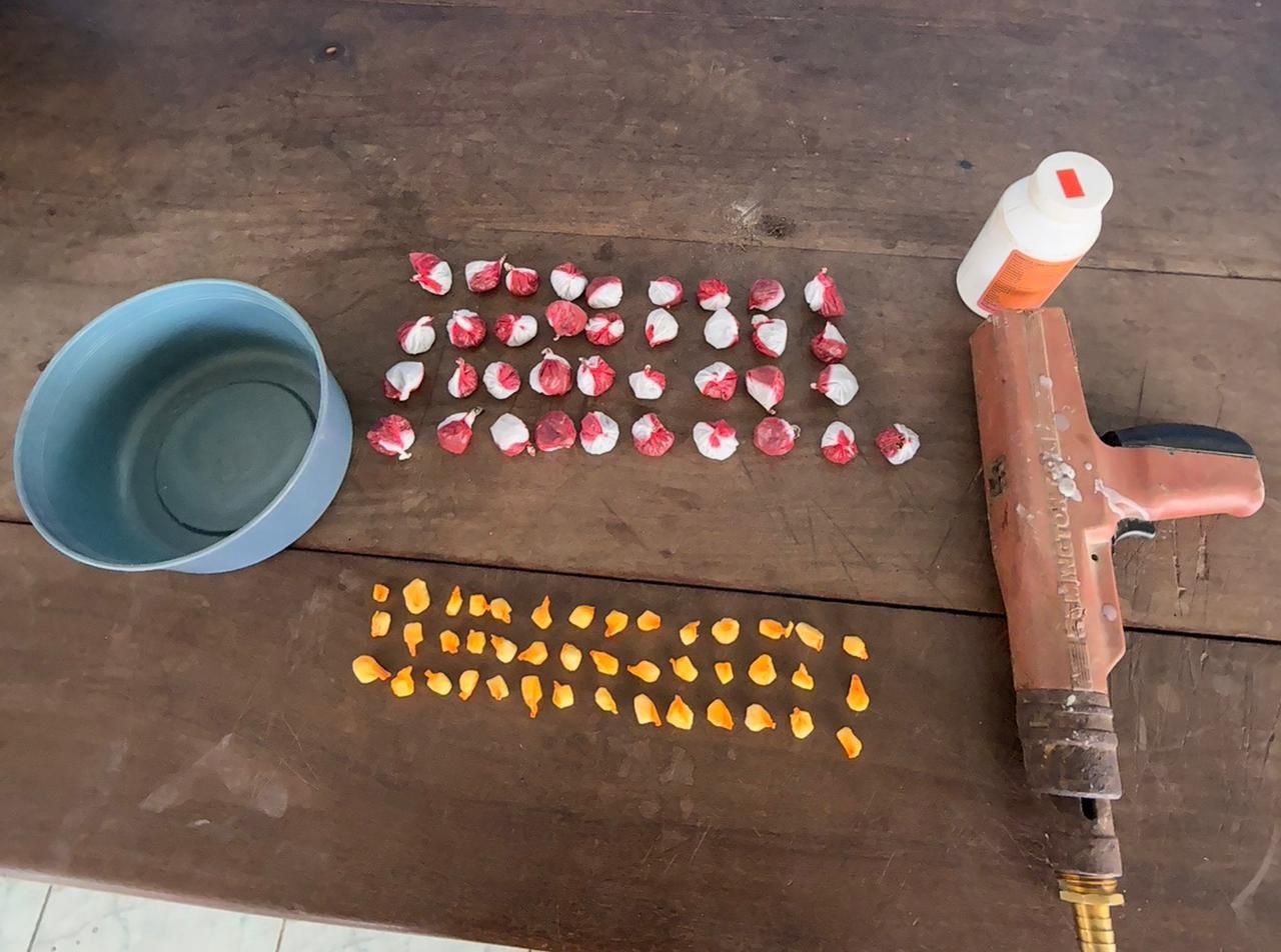 Durante la operación, los agentes ocuparon 37 porciones de un vegetal presumiblemente marihuana y 42 porciones de un material blanco rocoso que se presume es crack, además de un arma de fabricación casera tipo chagón.
