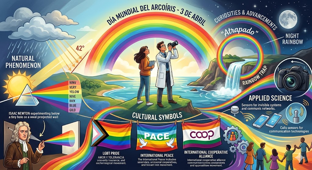 El Día Mundial del Arcoíris se celebra el 3 de abril de cada año para realzar un fascinante y bonito fenómeno natural, que ocurre cuando los rayos solares atraviesan las gotas de la lluvia en un ángulo de 42 grados, que da como resultado un halo de luz multicolor.