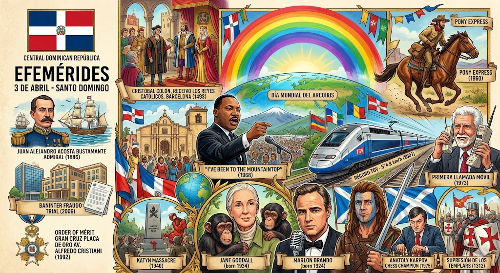 Santo Domingo.- Las efemérides del 03 de abril, están marcadas por importantes acontecimientos históricos y celebraciones internacionales que dejaron huella en la historia mundial. A continuación, las principales efemérides del 03 de abril: