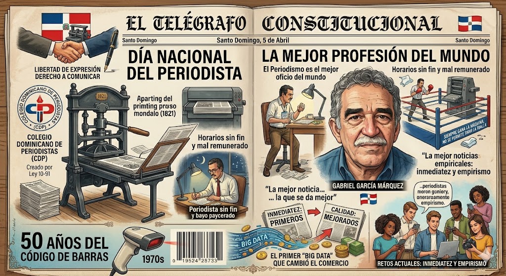 Santo Domingo.- Este 5 de abril se celebra en la República Dominicana el Día Nacional del Periodista. Esta celebración inició en el año 1821, fecha en la que se publicó el primer periódico dominicano, «El Telégrafo Constitucional».