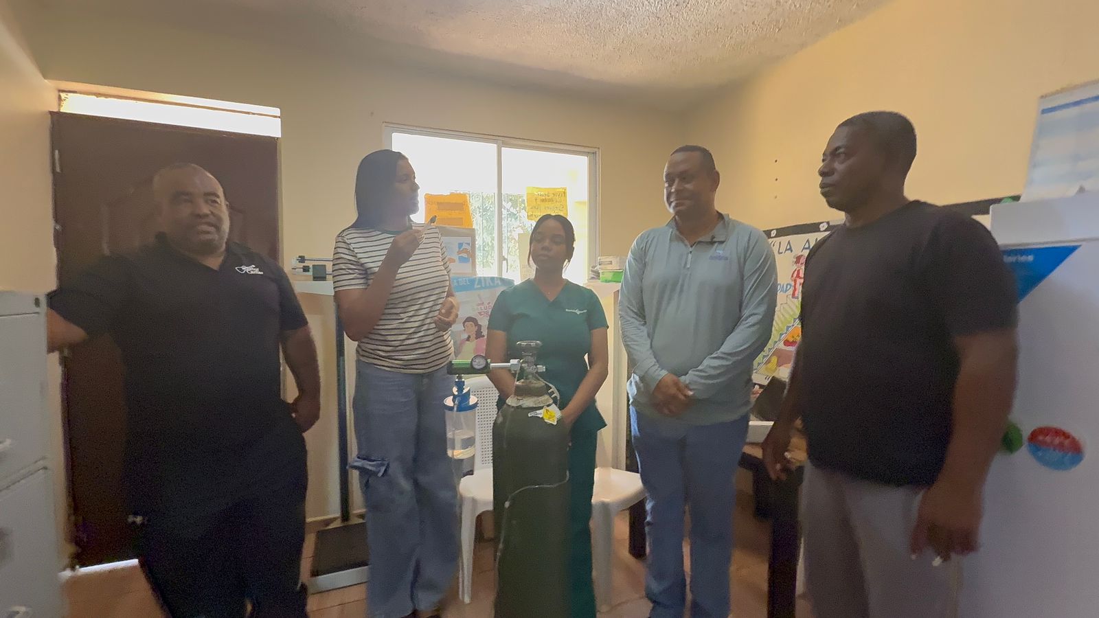 Samaná.- La Fundación Rincón Bay, representada por su director, Víctor Dumé, realizó la entrega de un tanque de oxígeno con su válvula a la Policlínica de Las Galeras, en un acto conjunto con la alcaldesa Ana Reyes y los regidores Lenin King y José Armando Almeida.