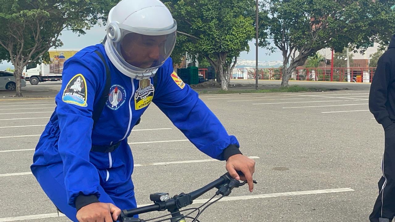 Santiago.- Decidido a no quedarse fuera de la conversación y a pelear por una oportunidad en el mundo digital, el joven Yeiscol Báez, oriundo del sector Los Polanco, en el municipio de Tamboril, de la provincia de Santiago, emprendió este miércoles una travesía en bicicleta desde el Monumento a los Héroes de la Restauración hasta las instalaciones del llamado “edificio rojo”, con el objetivo de pedirle cara a cara al empresario Santiago Matías (Alofoke) que lo incluya en el reality “Planeta Alofoke”.