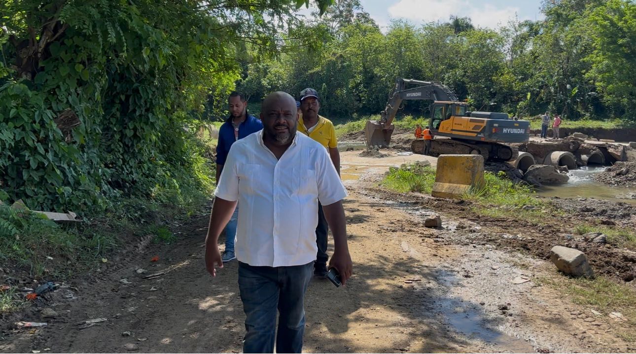 Monte Plata. – El dirigente político Anderson De Los Santos informó la mañana de este viernes que se encuentra en la comunidad de La Cuesta del Jobo, donde actualmente se ejecutan trabajos de reparación del desvío que fue destruido por las intensas lluvias registradas en los últimos días en la zona.
