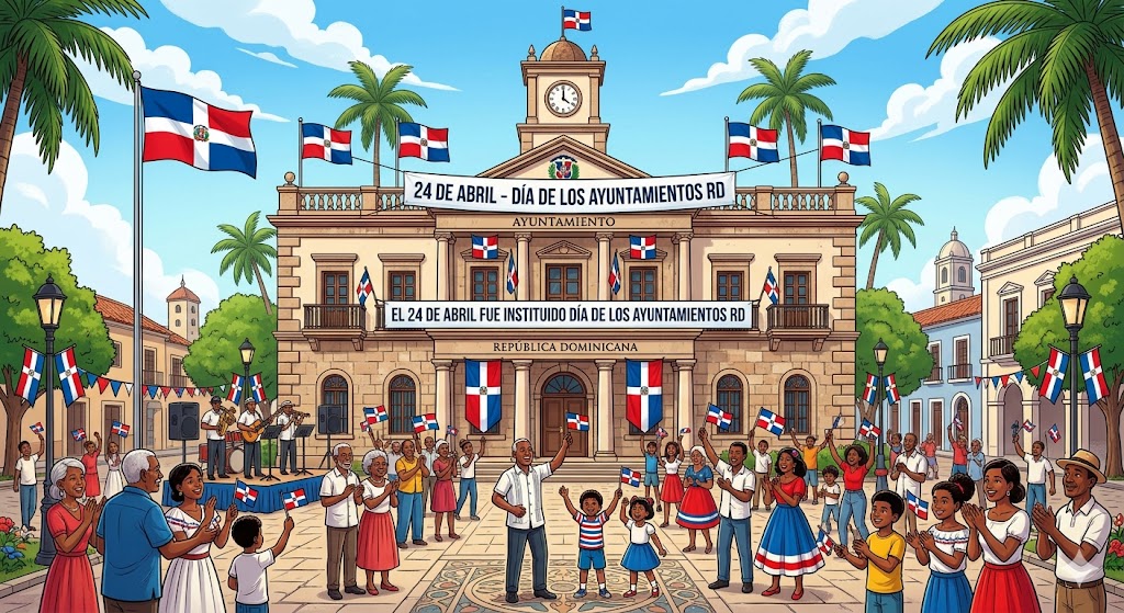 Santo Domingo.-El 24 de abril fue instituido día de los Ayuntamientos por la ley 3455 de organización municipal en su artículo 214, y es retomada en la actual Ley Del Distrito Nacional y los municipios 176 – 07 en su artículo 369.