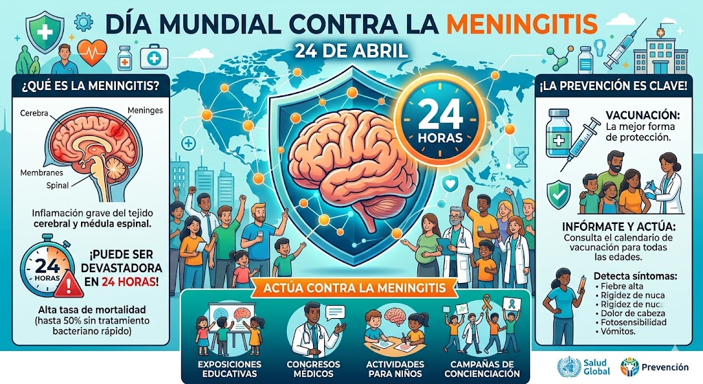 El Día Mundial contra la Meningitis se celebra cada año el 24 de abril. En este día se realizan diversas actividades para informar a la población a nivel mundial sobre la importancia de la prevención de esta enfermedad mediante la vacunación.